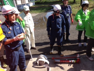 開会式後、緑が丘分署の隊員から、市から支給される資機材の説明が全隊員にありました。
