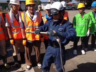 40mmホースのため、自主防災隊の女性他員も放水をすることができました。