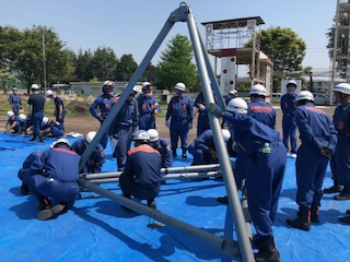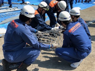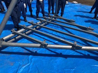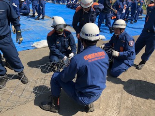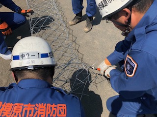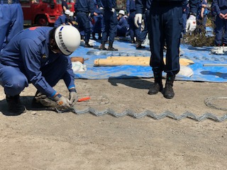 中央方面隊第4分団は、蛇籠と構成枠の作成の仕方を消防職員から説明して頂き、実際に組み立てました。