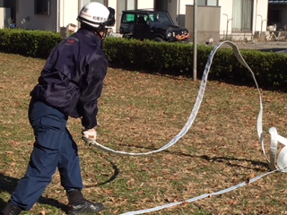 スタンドパイプとホース展張、結合、脱着は、緑が丘分署の職員が担当されました。