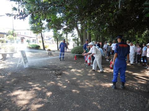 参加者の方に実際に水消火器を使用して頂きました。