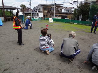 参加者は、一次避難場所である
