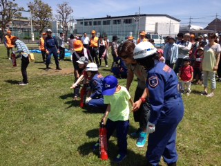 自治会の方が作られた火点に向かって実際に放水し、消火器の使用方法を参加された皆さん全員が経験されました。
