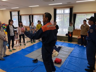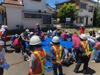 2018/5/20(日)は、並木2、3、青葉2、3丁目自治会の防災訓練に緑が丘分署の分署長を始め職員の方と光が丘消防団も参加致しました。 同日、4か所の災訓練でしたので、並木3丁目自治会の防災訓練は、緑が丘分署の職員の方のみにご指導をお願いしました。 以下の写真は、青葉3丁目自治会の防災訓練の会場の訓練風景です。