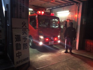 署員の方は、災害発生に備え、消防車出場準備をされました。